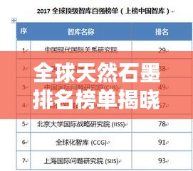 天然石墨是一種重要的礦物資源,因其獨(dú)特的物理和化學(xué)性質(zhì),被廣泛應(yīng)用于冶金、機(jī)械、電子、化工等領(lǐng)域,在全球經(jīng)濟(jì)不斷發(fā)展和科技進(jìn)步的推動(dòng)下,天然石墨的需求量不斷增加,本文將介紹全球天然石墨的排名情況,分析全球天然石墨產(chǎn)業(yè)的現(xiàn)狀和未來(lái)趨勢(shì)。