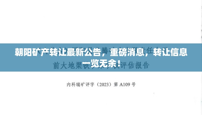 朝陽礦產(chǎn)轉(zhuǎn)讓最新公告,重磅消息,轉(zhuǎn)讓信息一覽無余!