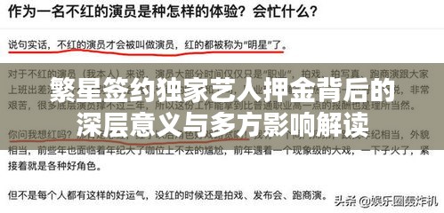 繁星簽約獨(dú)家藝人押金背后的深層意義與多方影響解讀