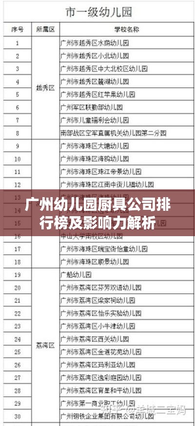 隨著廣州市幼教事業(yè)的蓬勃發(fā)展,幼兒園廚具行業(yè)也迎來了新的發(fā)展機(jī)遇,幼兒園廚具作為保障幼兒健康成長(zhǎng)的重要組成部分,其質(zhì)量和安全性尤為重要,本文將探討廣州地區(qū)幼兒園廚具公司的排名及其行業(yè)影響力,以期為消費(fèi)者提供有益的參考。