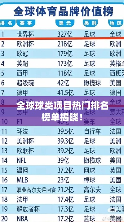 球類運動以其獨特的魅力吸引了全世界的目光,各式各樣的球類項目不僅豐富了人們的日常生活,也促進了世界各地文化的交流與融合,本文將為您揭示世界上最受歡迎的球類項目排名。