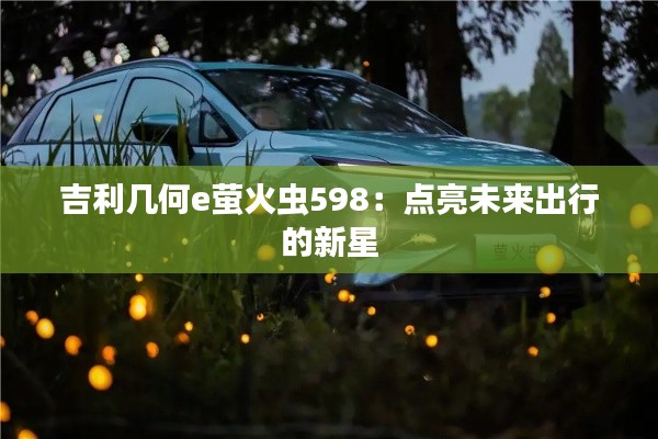 在這個充滿變革的時代,吉利幾何e螢火蟲598以其獨特的魅力,點亮了未來出行的星空。讓我們期待,這顆新星在未來能夠綻放出更加耀眼的光芒。