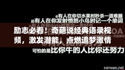 在如今信息爆炸的時代,人們獲取知識和靈感的渠道日益豐富。“奇葩說勵志語錄視頻”作為一種新型的內(nèi)容形式,正逐漸受到廣大年輕人的喜愛和追捧,這類視頻以獨特的視角、犀利的語言和富有感染力的勵志語錄,激發(fā)著人們的潛能,鼓舞著人們勇敢追尋夢想。