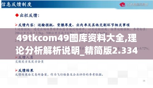 綜上所述,“49tkcom49圖庫資料大全,理論分析解析說明_精簡版2.334”是一個結合了理論與實踐的珍貴資源庫。它不僅為學術界和專業(yè)人士提供了豐富的理論知識,也為實際應用提供了指導和參考。隨著“49tkcom49圖庫資料大全”的不斷發(fā)展和完善,我們期待它在未來能夠發(fā)揮更大的作用,為社會發(fā)展貢獻更多的智慧和力量。