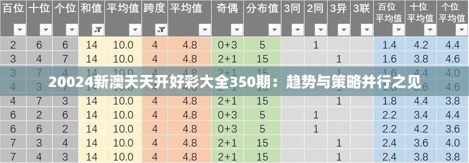 20024新澳天天開好彩大全350期:趨勢與策略并行之見