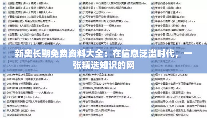 新奧長(zhǎng)期免費(fèi)資料大全:在信息泛濫時(shí)代,一張精選知識(shí)的網(wǎng)