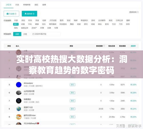 隨著互聯(lián)網(wǎng)的飛速發(fā)展,大數(shù)據(jù)技術(shù)在各個(gè)領(lǐng)域的應(yīng)用日益廣泛。教育行業(yè)也不例外,高校熱搜大數(shù)據(jù)分析成為了洞察教育趨勢(shì)、優(yōu)化教育資源配置的重要工具。本文將通過(guò)對(duì)實(shí)時(shí)高校熱搜大數(shù)據(jù)的分析,揭示當(dāng)前教育領(lǐng)域的熱點(diǎn)話題和趨勢(shì)。