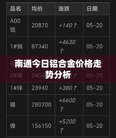 隨著全球經(jīng)濟(jì)的不斷發(fā)展和國(guó)內(nèi)市場(chǎng)的日益繁榮,鋁合金作為一種重要的金屬材料,其價(jià)格動(dòng)態(tài)一直備受關(guān)注,我們將重點(diǎn)關(guān)注南通地區(qū)鋁合金的最新價(jià)格情況。