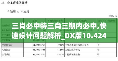 作為一個快速設計問題解析的工具,"三肖必中特三肖三期內(nèi)必中,快速設計問題解析_DX版10.424"可以提供專業(yè)的數(shù)據(jù)分析和策略分析服務,具有重要的參考價值。