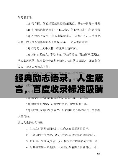 人生是一段充滿挑戰(zhàn)與機(jī)遇的旅程,每個人都在追尋屬于自己的夢想,在這條道路上,我們有時會遇到困難和挫折,需要一些勵志的話語來激勵自己繼續(xù)前進(jìn),以下是經(jīng)典勵志語錄人生的文章,希望能夠激勵你在人生的道路上勇往直前。