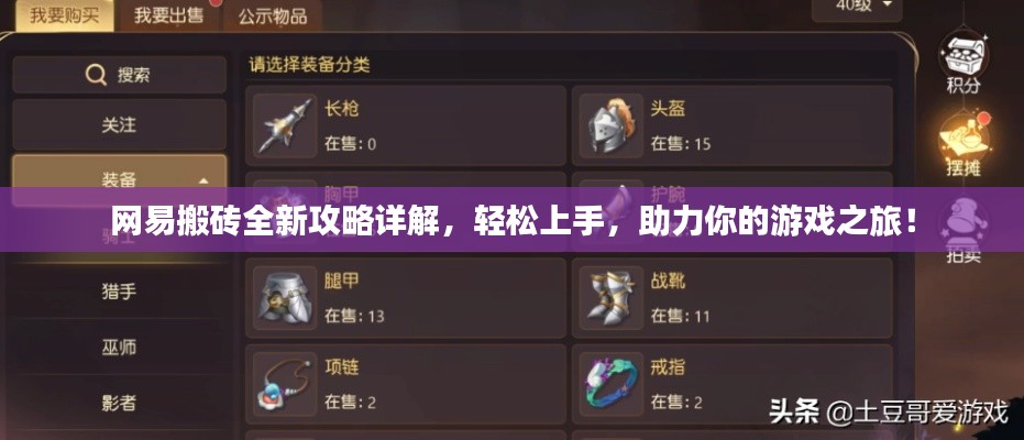 隨著網(wǎng)絡(luò)游戲的普及,越來越多的玩家投身于游戲世界,享受游戲帶來的樂趣,在游戲中,有一種特殊的職業(yè)——搬磚玩家,他們通過特定的技巧和策略,在游戲中賺取豐厚的收益,本文將為大家?guī)碜钚戮W(wǎng)易搬磚攻略,幫助大家更好地掌握搬磚技巧,提升游戲收益。