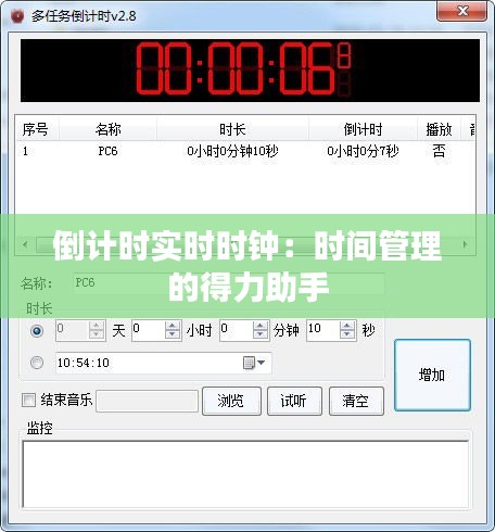 倒計(jì)時(shí)實(shí)時(shí)時(shí)鐘作為一種高效的時(shí)間管理工具,在個(gè)人、工作和教育領(lǐng)域發(fā)揮著重要作用。通過合理利用倒計(jì)時(shí)實(shí)時(shí)時(shí)鐘,我們可以更好地規(guī)劃時(shí)間,提高工作效率和生活質(zhì)量。選擇一款適合自己的倒計(jì)時(shí)實(shí)時(shí)時(shí)鐘,讓時(shí)間管理變得更加簡單、高效。